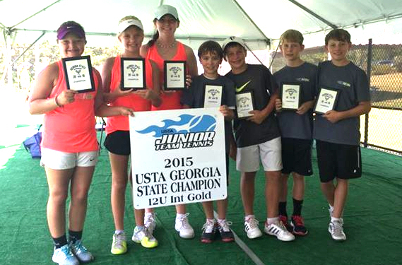 TFL 12u Team, USTA GA Jr. Team Tennis State Champions, CONGRATULATIONS! L-R Team Parent Susan Beach, Kelly A, Ali P, Hollin H, Sammy H, Caroline B, Braden D, Owen L and Coach Genaro
